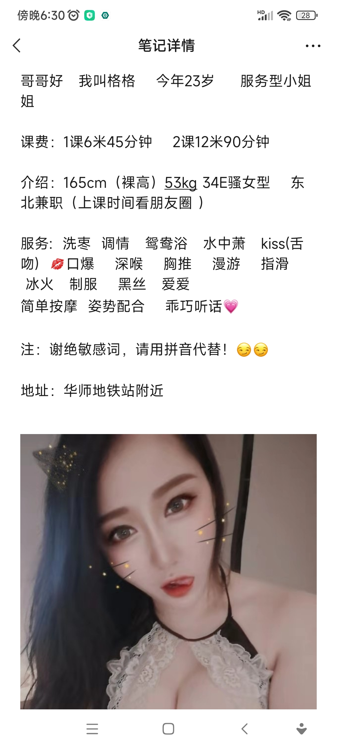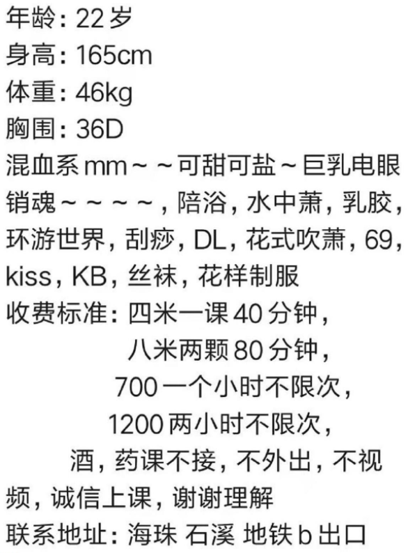 服务挺多的,年纪应该30-35,颜值看照片吧,住北京路那边,北京路地铁站附近就是了,自己单干的。有个妹子 ...
